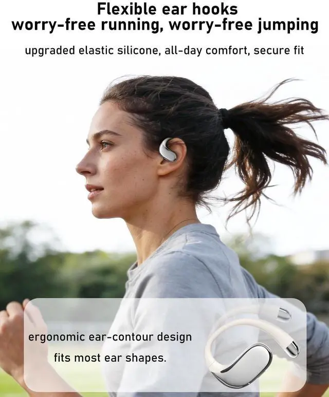 Feather-Light Comfort That Stays Put: Weighing only 0.28 oz, these open-ear air conduction headphones rest softly on your ears, secured by a gentle yet firm ear hook. Perfect for workouts, runs, or all-day wearso light, youll forget theyre there.