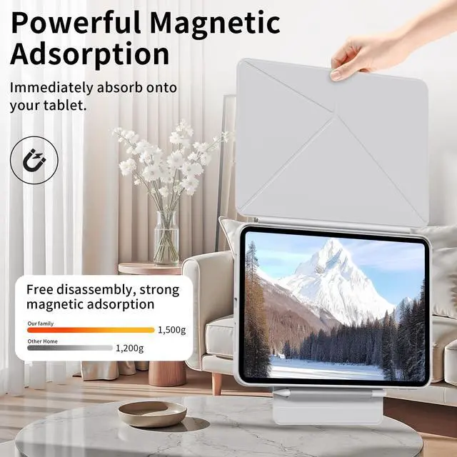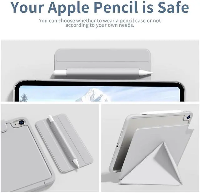 Stable Connection: Equipped with high-performance magnets that match iPad's original magnetic module, creating a tight and stable connection between the case and your iPad. The magnetic adsorption is firm enough to withstand daily carrying (in bag), one-handed holding and casual shaking without slipping or falling off. Seamless compatibility with iPad's original magnetic function, no interference with other device features. ^^ Detachable Pencil Clasp & Auto Wake/Sleep: This case fully supports pencil Pro and pencil 2nd Generation wireless charging as well as Pencil USB-C magnetic attachment. So the protective case comes with a detachable magnetic clasp, which can not only hold tablet but also serve as a pencil holder to prevent your pencils from falling or getting lost. The magnetic induction auto wake/sleep function instantly activates or turns off the iPad screen when opening/closing the case, effectively saving the device's battery power. ^^ Multi-fold support &Precise