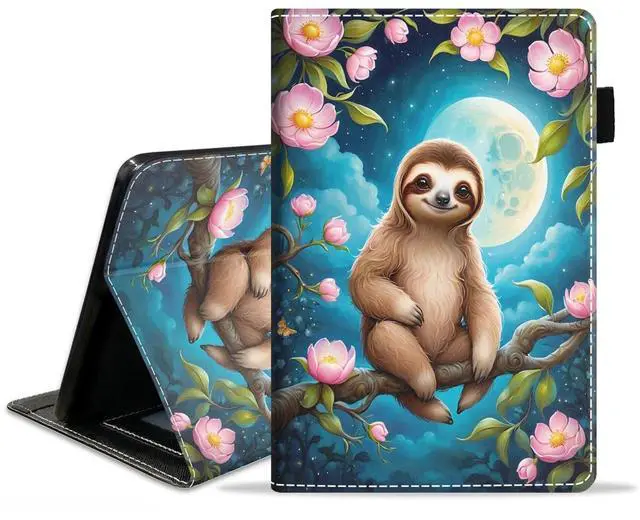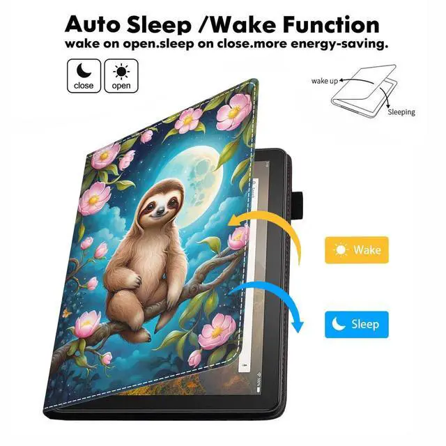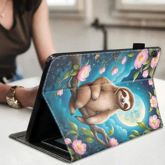 stmedazm Case for Kindle Fire HD 10 Tablet 10.1" (9th/7th Generation, 2019/2017 Release), Premium PU Leather Stand Cover with Auto Wake/Sleep - Cute Sloth