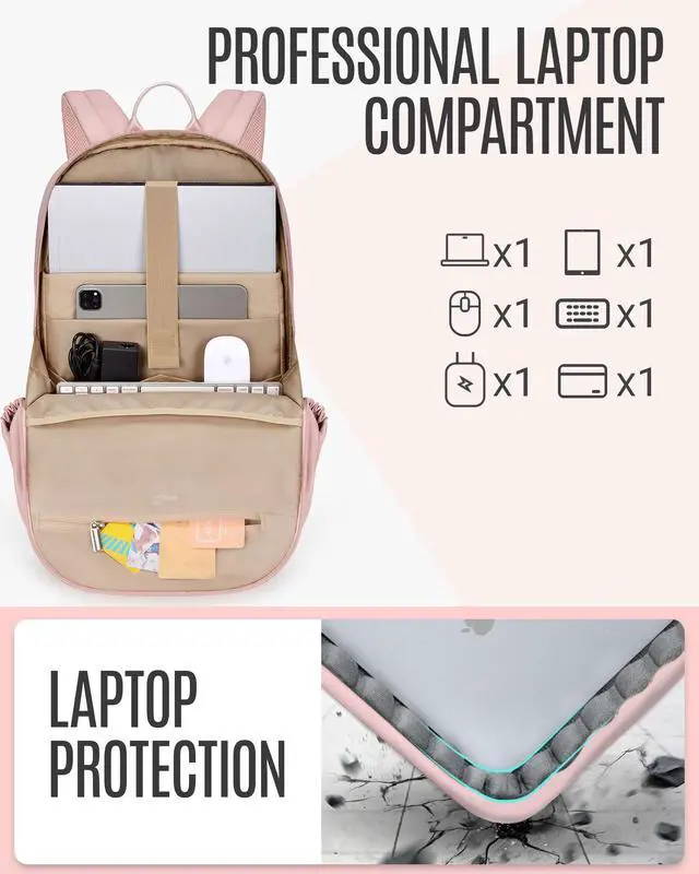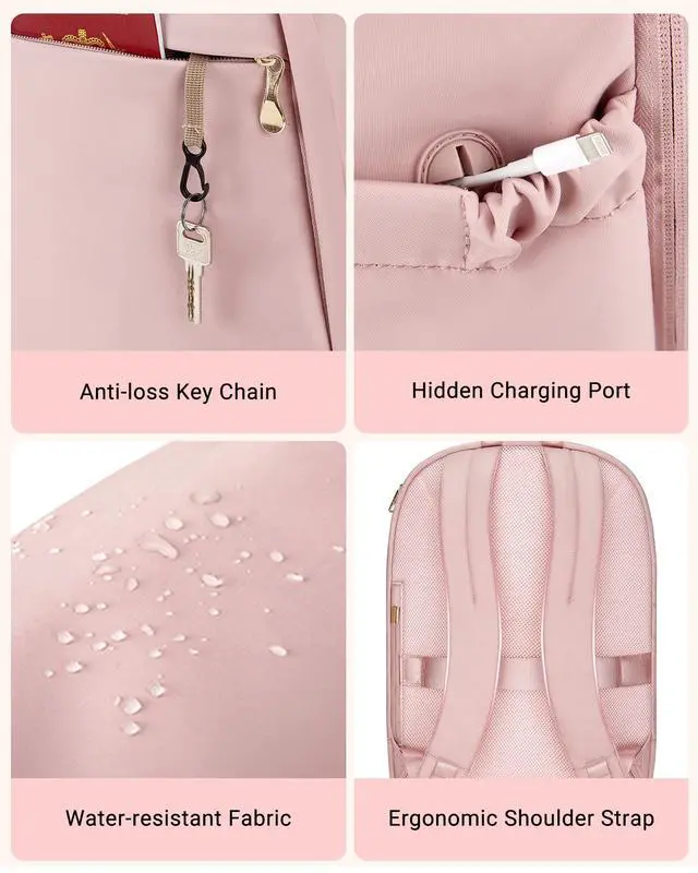 LARGE CAPACITY - The separate laptop compartment fits up to 17.3 '' laptop. Large main compartment roomy for daily necessities, such as A4 folders, magazines, tablet, chargers, power bank and clothes. ^^ CONVENIENT POCKETS - Front zippered pocket of the backpack allows you to put your small items in an organized manner. Backside hidden pocket to keep your phone or other valuable items. Side pockets for water bottle or umbrella. ^^ EASY CHARGE You can charge the phone via the side pockets hole so that you dont need to take the portable charger all the time.