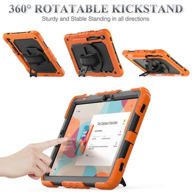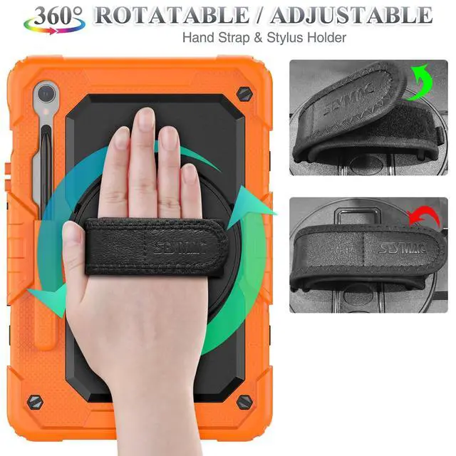 SEYMAC stock Case for Samsung Galaxy Tab S10 Lite / S10 FE / S9 FE 5G / S9 Tablet Case 10.9''/ 11'' Protective with Screen Protector, Pen Holder, 360 Rotate Stand, Hand Strap, Shoulder Strap, Orange