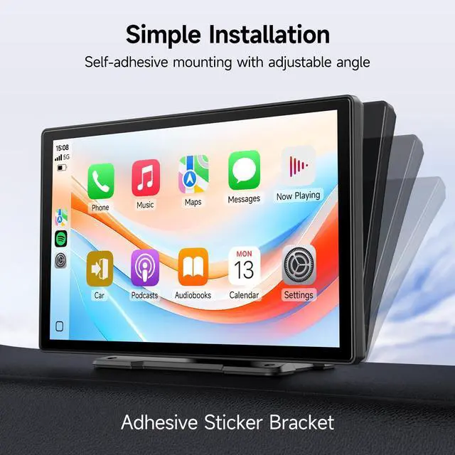 For Various Car Models: No need to disassemble the car console, keep the original radio, our 9 inch carplay screen is compatible with 7- 24V models, cigarette lighter powered. Plug it in and use it, mount it on any safe flat surface according to your needs with the equipped self-adhesive mount. Suitable for most motorized vehicles such as cars, vans, pickup trucks, etc.