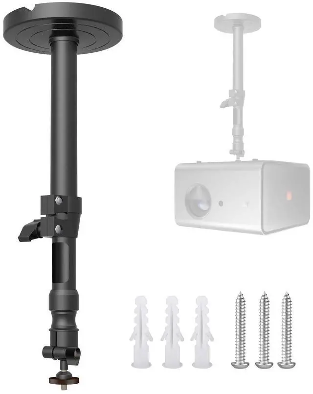 Achieve the perfect viewing angle without digital correction. ^^ UNIVERSAL COMPATIBILITY Fits projectors with standard 1/4" screw mount or mounting holes up to 12 inches apart. Works with compact mini projectors and full-size home theater projectors alike. ^^ EASY 15-MINUTE INSTALL All mounting hardware and clear instructions included. Three-point ceiling attachment for rock-solid stability. Ideal for permanent setups in living rooms, bedrooms, conference rooms, and home cinemas.