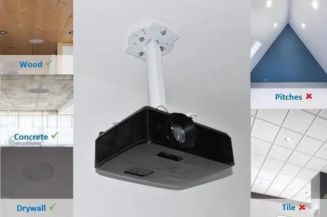 Package Includes: Quick Projector Mount Plate x1, Mounting Hardware x4, Ceiling Plate x1, Ceiling drywall anchors x2, Installation instructions, US based customer support available 7 days a week.