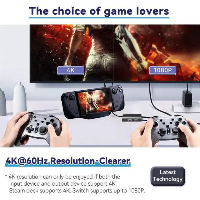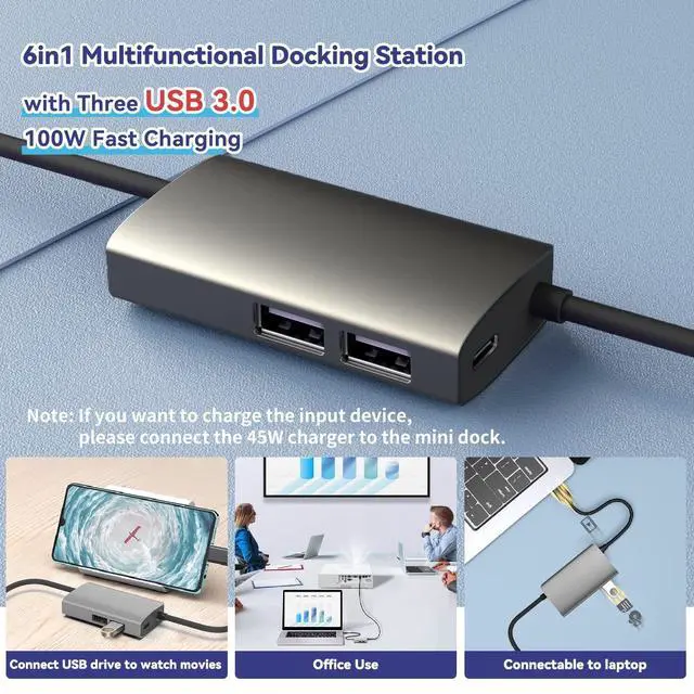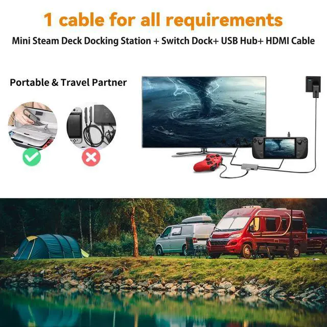 6-in-1 Mini Docking Station for Steam DeckThis great invention combines 6 functions in one small portable dock. Our Mini Dock contains HDMI 4K@60Hz output+HDMI 2.0 Cable+3*USB 3.0 +100W Fast Charging USB-C Port. This one 63 inch ( 1.6 m) cable caters for all your needs. Not only for gaming, but also for office. ^^ 4K@60Hz HDMI OutputThe Mini Steam Deck Dock comes with a 4K@60Hz HDMI 2.0 output. Have a better visual experience when playing games!