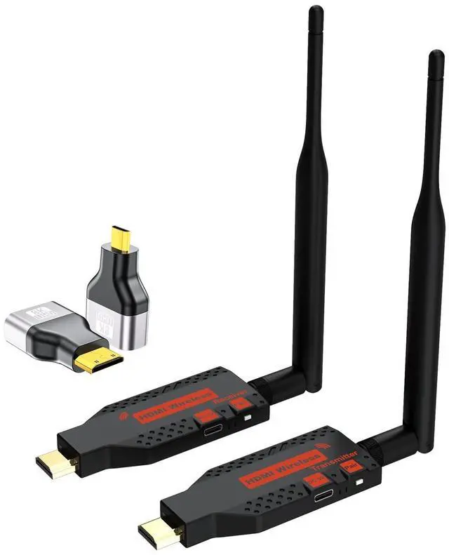 [Plug-and-Play, Lightweight and Portable] The wireless HDMI is pre-paired and ready to use upon purchase, requiring no drivers, apps, or network connection. It's lightweight and portable, eliminating the need for bulky wired cables. Perfect for outdoor business presentations, conference rooms, home entertainment, and multimedia education, providing convenience and efficiency. ^^ [Dual-Antenna Design, Long-Range, No-Lag, and Strong Compatibility] This wireless HDMI transmitter and receiver with dual-antenna design offers a transmission distance of up to 330 feet/100 meters. It features a built-in high-performance chip for enhanced compatibility, utilizing both 2.4G and 5G dual-band transmission protocols.
