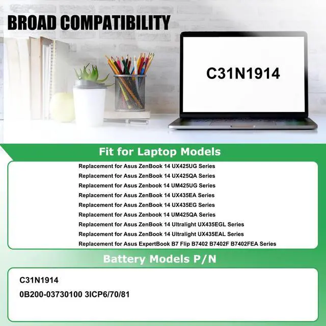 COMPATIBLE LAPTOP MODELS: Replacement for Asus ZenBook 13 UX425UG ZenBook 14 Ultralight UX435EAL Zenbook 14 UM425QA UX435EG UX435EG-AI039T UX435EA Series ^^