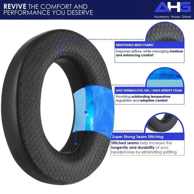 These AHG accessory house global cooling gel replacement ear pads feature a cooling gel layer, high-density memory foam, and breathable materials to keep you cool and comfortable, even during marathon listening sessions. Plus, the increased thickness helps improve the seal and restore the sound you love. THE PERFORMANCE YOU DESERVEGreat headphones deserve great sound and comfort. These cooling gel ear pads are designed to maintain your headphones wide soundstage and natural, balanced audio, while boosting durability and isolation. Bring your headphones back to life and enjoy the crisp, immersive listening experience they were built for.