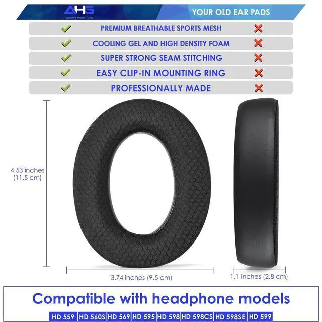 MAKING THE OLD, NEW AGAIN! Your HD 598, HD 599, HD 560S, HD 595, HD 579, HD 569, or HD 559 headphones have been by your side for years delivering the sound you love through every beat. But over time, the ear pads wear down, and you might not even notice how much comfort and performance you're losing. Keep Your Ears Happy with Cooling ComfortWorn-out ear pads not only feel rough, but they also ruin your listening experience. If your HD 598, HD 599, HD 560S, HD 595, HD 579, HD 569, or HD 559 cushions are cracked, flat, or falling apart, its time for an upgrade.