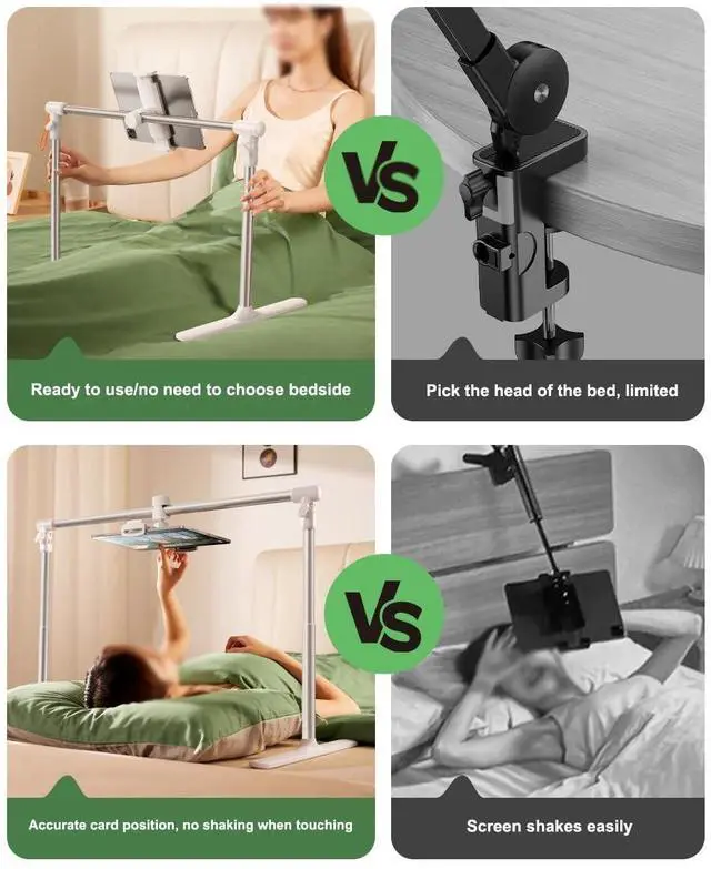 This bedside lazy stand is made of high-quality aluminum alloy, which is very lightweight, durable and stable. Color, luster and smoothness are guaranteed. ^^ This lazy stand breaks the rules. It is a lazy stand that does not choose a bed. It does not require clamping or cracking. It gets rid of space constraints and does not choose postures and scenes. It can be used wherever you want. ^^ This high-looking lazy stand has a 360 rotatable chuck, and the angle can be adjusted at will. The height and width can be adjusted to suit your comfort.