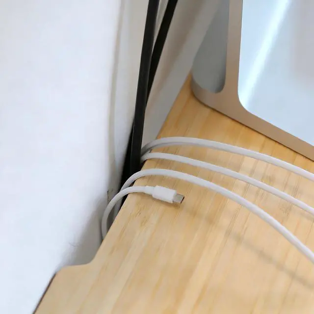 ^^ Hidden Keyboard Storage: An 18" x 4" x 7.8" open bottom clearance fits a full-size keyboard and mouse, keeping your desktop clean while maintaining easy access. ^^ Cable-Friendly Design The open back groove allows power cords and monitor cables to pass through smoothly, helping reduce visible clutter while keeping cables easy to reach.