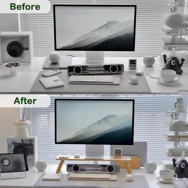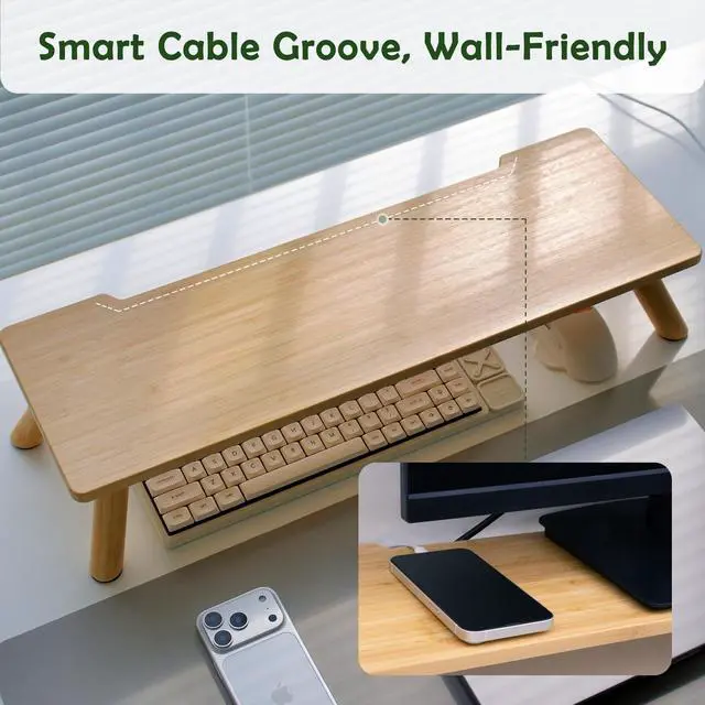 Natural Bamboo Aesthetic: Crafted from 100% natural bamboo with a smooth water-based finish, this monitor riser introduces warm wood tones and organic texture, creating a calming, nature-inspired home office atmosphere.