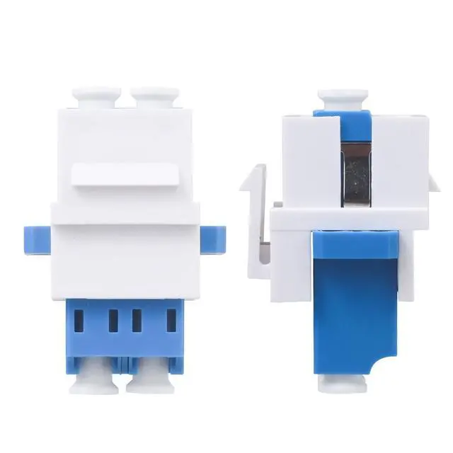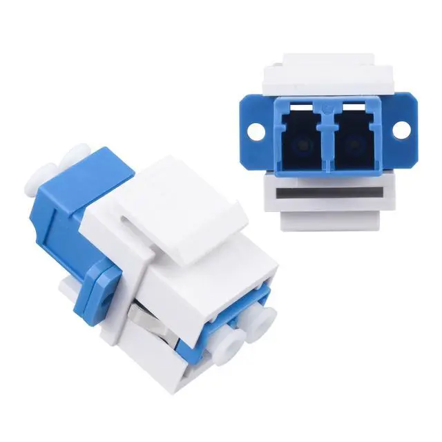 Included60PC LC duplex single mode keystone coupler. ^^ PerformanceLow insertion loss, high stability. It is used to connect two duplex single-mode LC/LC fiber jumpers together and is suitable for fiber patch boards. ^^ Dust CoverAll LC couplers are polished and cleaned and covered with dust cover to keep the connector clean before use.