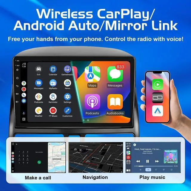 Performance Radio: This Honda CRV CR-V 2002-2006 head unit is powered by an upgraded 8 core processor with 4GB RAM and 32GB ROM, ensuring smooth operation, fast response times, and low power consumption for a superior multimedia experience ^^ Wireless CarPlay & Android Auto&Mirror Link: The Android head unit supports both wireless and wired CarPlay/Android Auto and Mirror Link, allowing you to easily access navigation, music, messages, and calls with Siri or Google Assistant voice control, making it ideal for any Honda CRV CR-V 2002-2006 setup ^^ 1280*720 HD Touchscreen, Backup Camera &