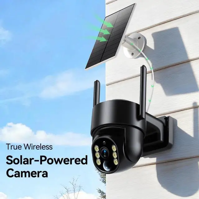 Wireless Design & Solar Power: No wires or frequent charging needed! Cameras for home security external solar panel ensures continuous outdoor power, keeping the camera powered indefinitely. Even during storms or prolonged cloudy periods, the backup battery guarantees round-the-clock protection. ^^