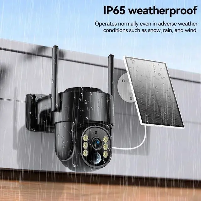 Full Coverage & IP65 Waterproof: This solar powered security camera outdoor offers 270 horizontal and 90vertical rotation, effortlessly covering your entire home and yard. Its IP65 waterproof rating ensures stable operation during heavy rain, snow, and extreme temperatures, adapting to any outdoor scenes. ^^