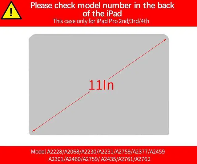 Check your ModelPlease kindly check the model number "Axxxx" on the back of the iPad before your purchase, make sure you choose the exact same model number as the listing title stated A2759/A2435/A2761/A2762/A2377/A2301/A2459/A2460A2228/A2068/A2230/A2231/A1980/A2013/A1934/A1979 ^^ Cozy and PracticalTwo angles are provided. Provides a good enough angle for viewing or typing while keeping your hands free. ^^