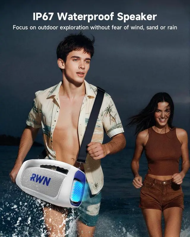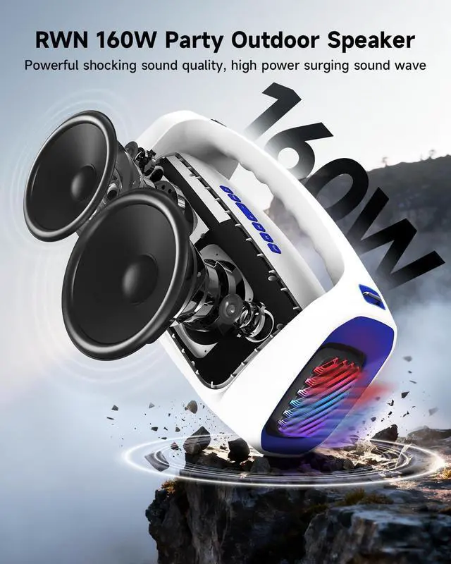 OUTDOOR SOUND: This portable speaker is equipped with two 3.5 -inch 60W woofers and two 20W tweeters. DSP Intelligent Crossover technology adds depth and clarity to the sound. With up to 160 W, it's easy to navigate backyard parties and movie Night. ^^ IP67 FULL PROTECTIONBuilt for outdoor adventures, this waterproof speaker shrugs off pool splashes, pumps your favorite tunes through hike rainshowers, and stays with you always.