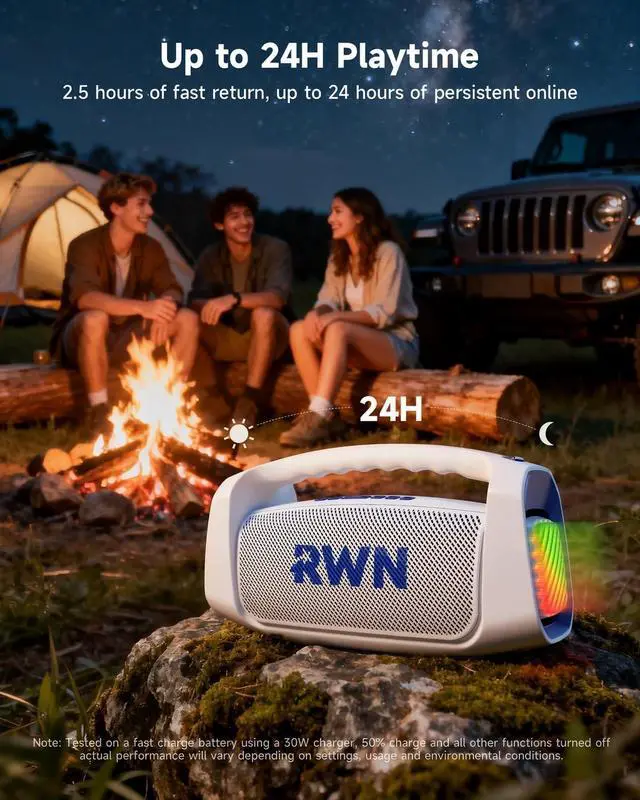 ^^ 24-HOUR BATTERY LIFE: 30W fast-charging bluetooth speakers wireless, surpassing most similar products on the market. Whether it's an all-day beach party or a long-distance driving trip, it should transform into a mobile charger in time to completely solve the power anxiety in outdoor activities. ^^ 6