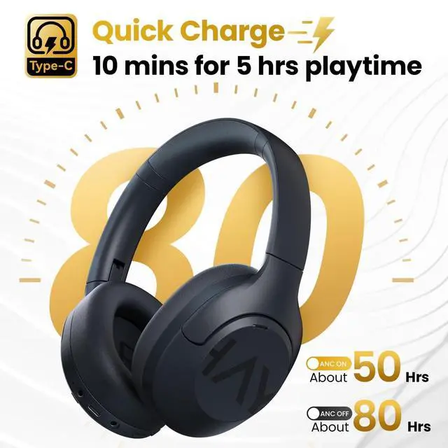 Fast Charging: HAYLOU S30 Pro wireless noise cancelling headphones can enjoy up to 80 hours of playtime50 hours with ANC enabled, 10 minutes quick charge offers an additional 5 hours of playback, ideal for travel, gym sessions, or workdays ^^ Custom App & Multipoint ConnectionCustomize your sound with the HAYLOU SOUND app, featuring ANC controls, preset sound profiles, device renaming, and a Game Mode. It also enables seamless two-device switching ^^