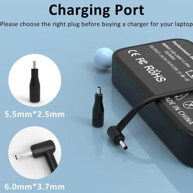Basic Data: Input: AC 100-240V,50/60Hz 2.34A, Output: DC 20V, 9A, Power Wattage: 180 Watt, Connector Size: 6.0mm*3.7mm, compatible with asus tuf gaming laptop charger f15 charger