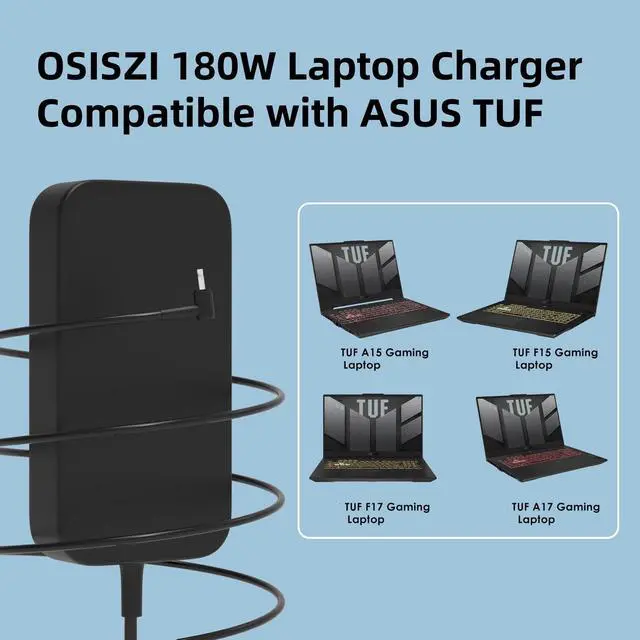 Wide Compatibility: OSISZI 180W Power Adapter ADP-180MB F ADP-180TB H Compatible with Asus TUF Gaming F15 15.6'' F17 17.3" F16 A15 A17 A18 FX706HC FA180PM111 Business Laptop Charger 6.0*3.7+5.5*2.5mm