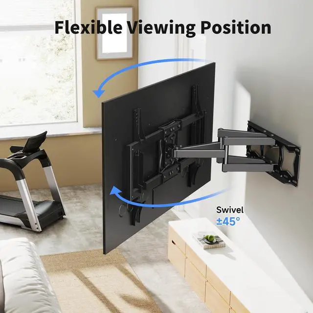 ^^ PERFECT VIEWING EXPERIENCE: XINLEI Full motion TV mount can tilt +5/-10, swivel 45, leveling adjustable 4for a perfect viewing angle.