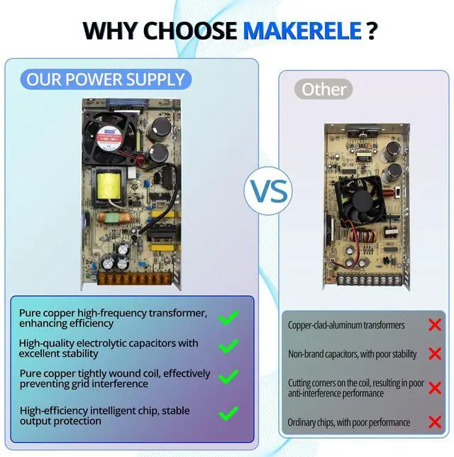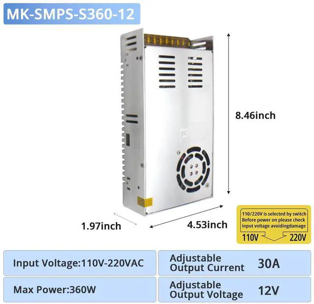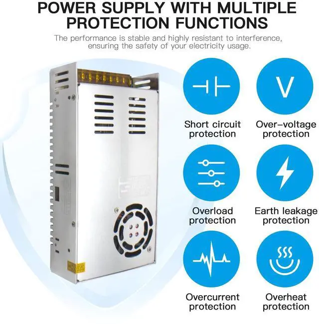 ^^ Safe and reliable: Switching power supply has short circuit protection, overload protection, overvoltage protection, temperature protection. Switching converter SMPS meet UL1950 requirements, meet EMC standards, built-in EMI filter to reduce ripple, soft start current design, effectively reduce AC input impact.