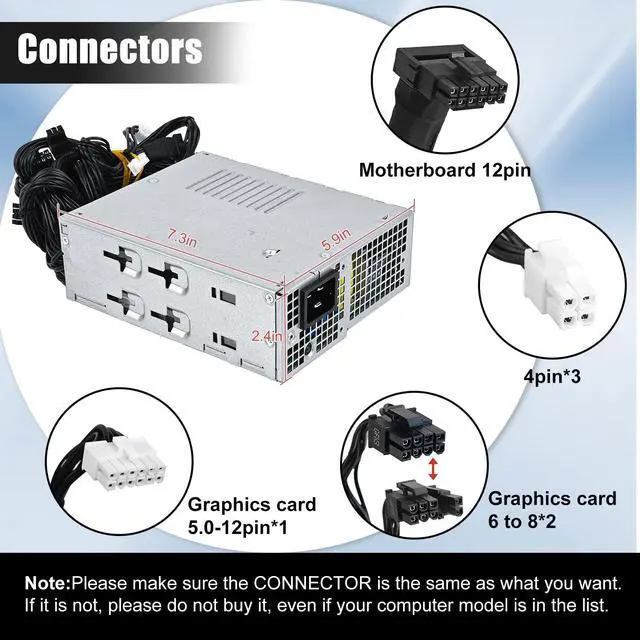 DCOUTPUT: + 12.0VA 42.0A, + 12.0VB 36.0A, + 12.0VC 72.0A ^^ Full Service & Package Inclede1* AC1350EPF-01 1350W power supply. 1 Year manufctured Full Service. 100% new part and high quality. All items are TESTED rigorously before shipping. Customer satisfaction is our unremitting pursuit. For any reason you're not completely satisfied, you can ask for a replacement or full money back. ^^ ConnectorsMotherboard 12pin+4pin*3+Graphics card 6 to 8*2+Graphics card 5.0 -12pin*1. If you have questions about the compatibility of your power supply, please feel free to ask store support and we will respond within 24 hours.