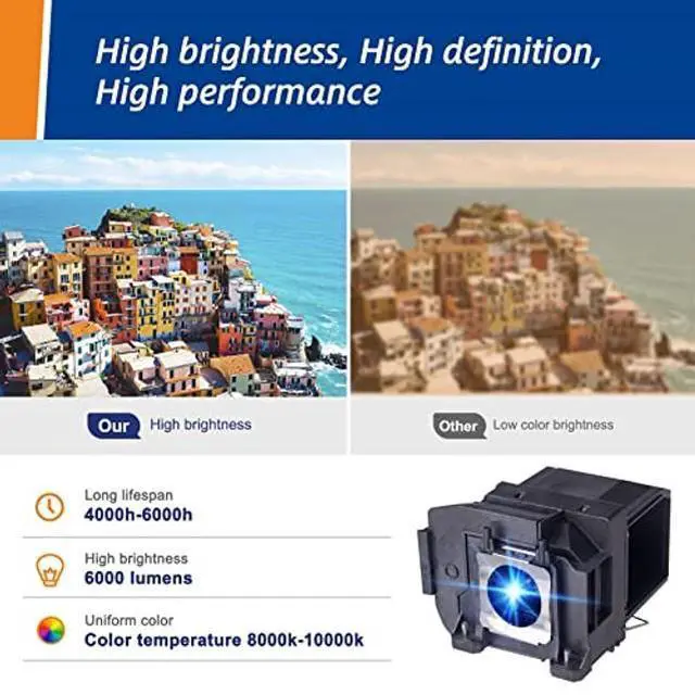 Projector Model: PowerLite Home Cinema 3500 3100 3000 3600E 3700 3900 3200 3800 EH-TW6600 EH-TW6800 EH-TW6700 EH-TW6600W Projector. ^^ *1-Year Warr anty for Risk-Free Confidence* Backed by hassle-free warranty support, we guar antee replacements for defects or premature wearproof of our commitment to durability and customer satisfaction. ^^ *Long-Lasting Durability* Built with robust materials and advanced cooling technology to maximize bulb life (up to 5, 000 hours), reducing frequent replacements. ^^ *Easy Installation* Designed for hassle-free replacement with clear instructions, ensuring seamless setup in minutesno technical expertise required. ^^ *Factory-Direct Quality & Precision* Crafted in our own state-of-the-art facility, every bulb meets strict OEM standards for flawless compatibility and performance, ensuring your projector operates like new.
