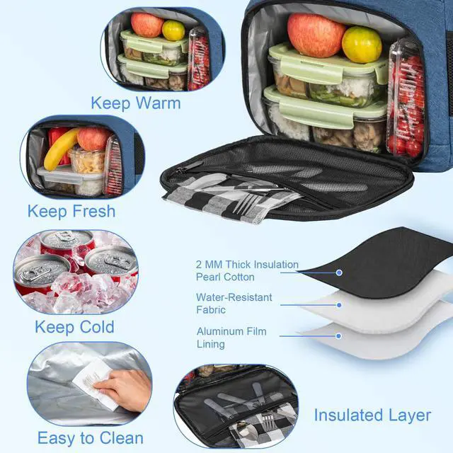 Durable: This lunch backpack is made of durable fabric and features tear-resistant zippers. The adjustable shoulder straps are made of breathable mesh, effectively distributing the backpack's weight, keeping you dry and comfortable even during extended wear.