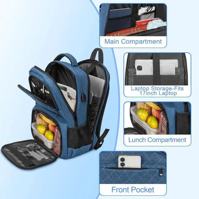 Insulated-Cooler Compartment: This compact lunch compartment measures 13.4 x 8 x 5.6 inches, easily accommodating up to 10 cans of drinks or food. Made from waterproof aluminum film lining and a high-performance lining, it not only keeps food warm but also keeps drinks chilled ^^ USB Charging Port for