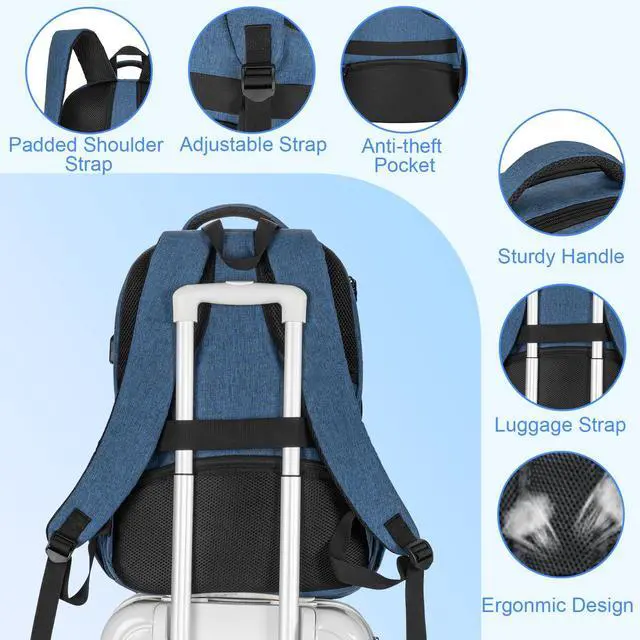 Laptop Backpack: This backpack features a dedicated luggage strap on the back that securely clips onto your luggage handle, keeping your hands free while traveling, making travel more convenient and efficient. An anti-theft pocket on the back protects your valuables from theft ^^ Comfortable and