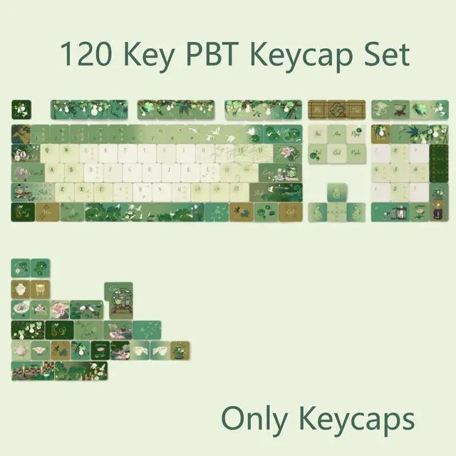 Package Contents: 1x120-keycap set (puller included). No keyboard, only keycaps2. Widely CompatibilityThis moa keyboard key caps consists of 120 keycaps, compatible with most ASIN US layout 61/64/68/84/87/96/98/100/104/108 mechanical keyboards3. Durable PBT KeycapsMade from textured, high-grade PBT for superior resistance to wear, oil, and fadingdelivering long-lasting comfort and typing precision4.