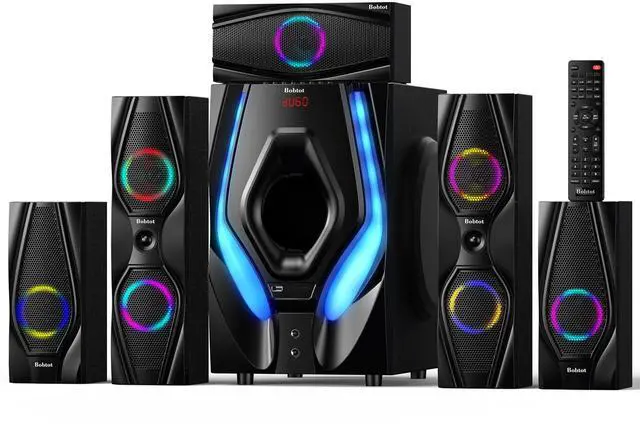 Peak Power: Bobtot Home theater system speakers can reach up to 1200 watts of power, 10-inch Subwoofer with a built-in receiver, high volume but with professional sound quality and excellent bass sound, deliver the cleanest, most natural sound possible. ^^ 5.1