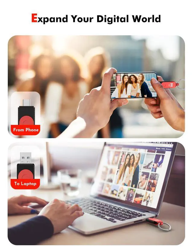 Never lose your data again: Our sturdy keychain ensures that you'll never misplace your 2in1 type C 3.2 flash drive. Clip it to your backpack, keys, or lanyard, and always have your data within reach. ^^