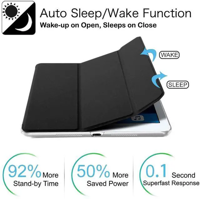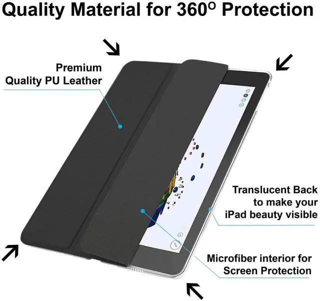 [Perfect Compatibility] - Exclusively Designed for all iPad 9.7" 2018(6th Gen A1893 / A1954) & 2017(5th Gen A1822 / A1823) & Air 2 2014 (A1566 A1567) & Air 1 2013 (A1474 A1475 A1476). See 2nd Photo to know correct Model of your iPad. To avoid any fitment issue please select correct Model/Size while placing your order. ^^ [Auto Sleep/Wake Function] - This case supports Automatic Sleep/Wake feature when the lid is opened and closed. ^^ [TriFold Stand Feature] - The Tri-Fold front provides you two standing positions for viewing or typing need. ^^ [Full Protection] - Anti-Scratch PU leather front with PC back cover are lightweight and durable to protect your device from scratches and shocks.