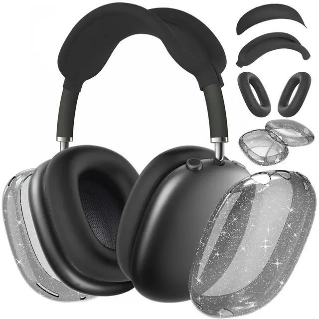 4 in 1 Silicone Case Cover for AirPods Max(2024/2020),Clear Soft TPU Ear Cups Cover/Ear Pad Case/Headband Covers for AirPods Max,Transparent Accessories for Apple AirPod Max (USB-C),Glitter Black