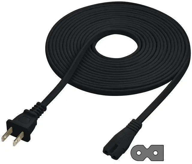 1 Extra Long 25-Foot Black Polarized Power Cable. A convenient solution when your electronic device is far from your electrical outlet. 2-slot round and square connector and 2 prong male plug for standard outlets.