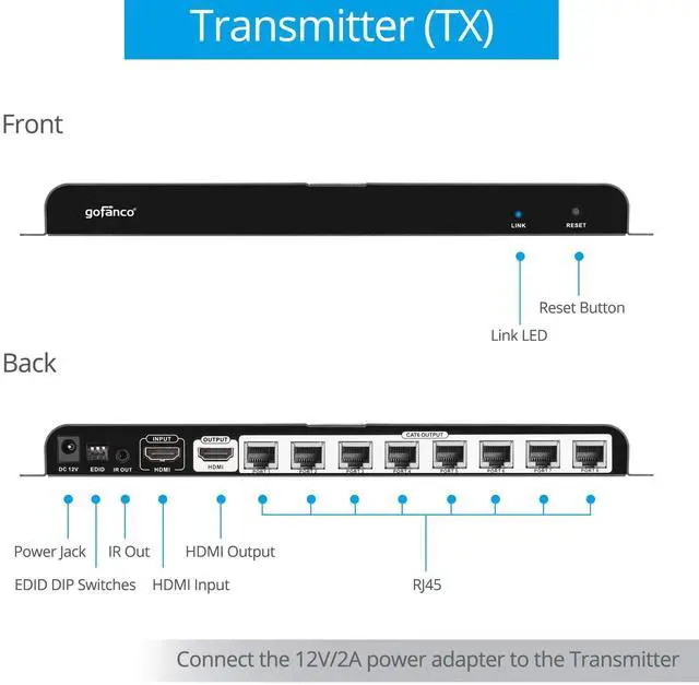 IR REMOTE CONTROL: Allow source device to recognize remote commands; You can control the HDMI source device at a secondary location with the included IR cables that forward commands over a CAT5e/6 cable for convenience ^^ EASY INSTALLATION - No driver required; Surface mountable metal housing allows easy placement; Sturdy metal enclosure provides durability and minimizes EMI/RFI noise interference. FCC, CE & RoHS compliant. Our products are backed with a 1-year limited warranty and experienced tech support team in Silicon Valley. If you have any questions or concerns, visit our gofanco website or click on our name in the buy box and select "Ask a Question".