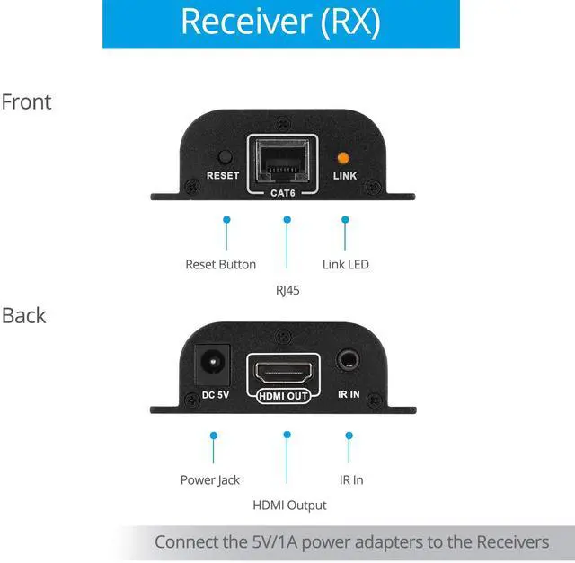 **NOTE: If you live in an area with thunderstorms, plug this product's power adapter into a surge protecter power strip to protect your device from voltage spikes ^^ HDMI LOSSLESS TRANSMISSION - Extends HDMI audio/video signals to synchronous output video display (s). Supports up to 1080p/1080i/720p/480p/480i at 60Hz video resolutions with CAT6/6a/7 and surround sound up to 7.1 -channel or stereo digital audio; Compatible with HDCP compliant devices & content. * Good quality CATx cables are essential in delivering quality content. ^^ HDMI LOOPOUT - HDMI Transmitter is equipped with 2 port HDMI splitter; Additional HDMI output on the Transmitter to connect to a local display for monitoring; Easy-to-follow EDID configurations via DIP switches ^^