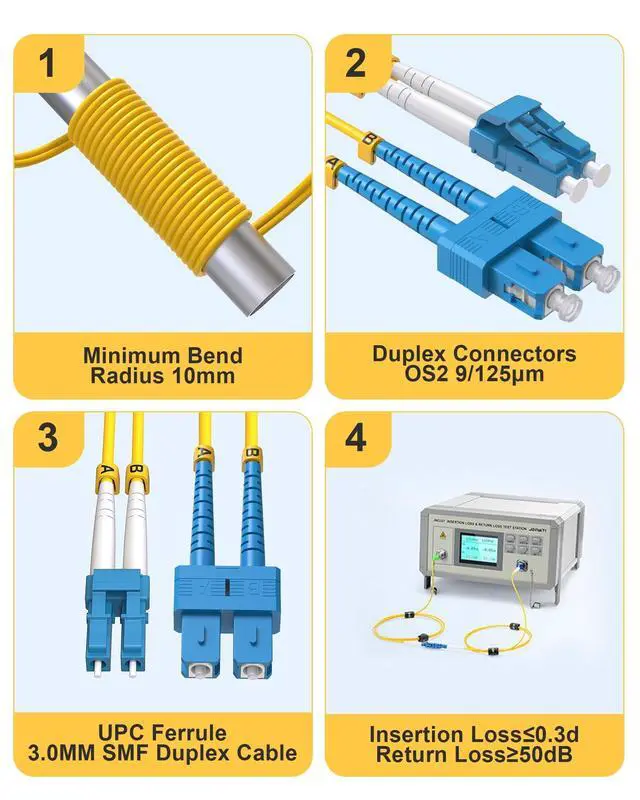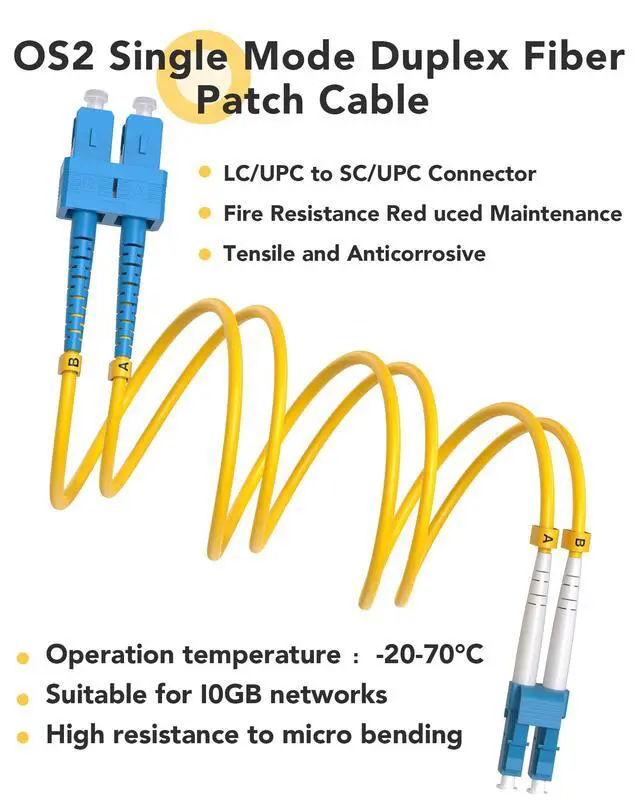 ^^ High-Speed Connectivity: Enjoy reliable Ethernet connections with our os2 sc to lc single mode fiber patch cables yellow jumper cord. Ideal for LAN, SAN, fast Ethernet, fiber channel, and more.