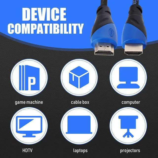 Compatible with Hdmi: the cable for high speed transmitting supports 4K video 60Hz, 2K, 1080P, 3D and multiple views, enjoy clear TV with deep colors and high resolution images, and other 10 ft cable devices to your 4K TV, displays and projectors ^^