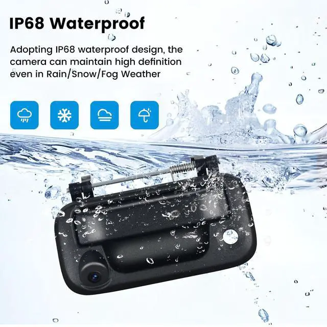included cables: Essential high-quality shielded cables are supplied. Using other cables may cause signal loss and image failure. * ^^ Default AHD1080P HD Picture QualityThe Tailgate Door Handle Replacement Camera equipped with 500 TVL and 1/3-inch CMOS image sensor, provides true real-time images with high definition and high resolution, retaining original colors, whether it is day or night. ^^ 170 Wide-Angle VisionThe Tailgate Handle Rear View Camera with a 170-degree ultra-wide-angle golden vision, it minimizes blind spots and displays the rear environment in all directions, becoming a reliable assistant when reversing and providing protection for your driving safety. ^^ IP68 Waterproof PerformanceDasaita rear view reversing camera adopts IP68 waterproof design, which can withstand the test of various weather conditions, ensuring that the camera is always durable and reliable in rainy, snowy or other harsh environments, providing a clear and reliable rear view to ensure your driving safety. ^^ Non-destructive InstallationThe backup camera comes with a plug-and-play wiring harness, which can be easily installed to trucks with aftermarket monitors, just connect the power cable of the camera to the backup light, and then connect the rear view camera to the radio screen via RCA cable to complete the installation.