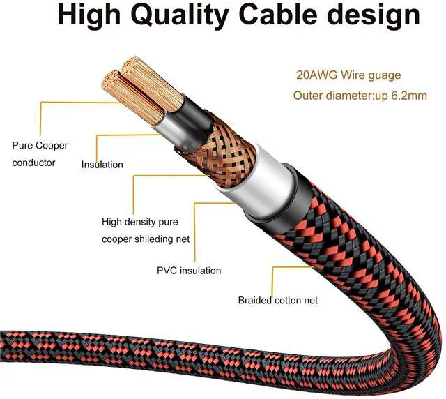 Conductor: 20AWG wire guage, 4N High pure Oxgen-Free Copper Core. 2.