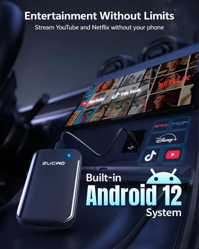 Adapter: Unlike typical dongles, ZUCWO features a built-in operating system that works independently. Stream YTB, NF, or other apps directly on your car screen without relying on your phonejust plug in and go ^^ Watch Videos Right in