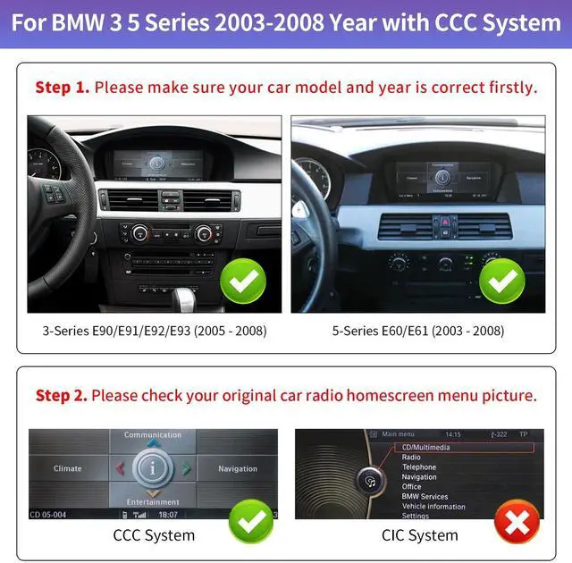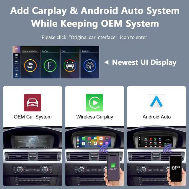 Screen Upgrade Display: Upgrade your factory system with an 8.9 -inch HD touchscreen display. This screen upgrade delivers clear visuals, responsive touch, and a modern interface. Ideal for drivers looking for BMW display upgrade and enhanced in-car experience. ^^ Wireless CarPlay & Android Auto Head Unit: Transform your original system into a smart car CarPlay head unit with wireless CarPlay and Android Auto. Access navigation, music, calls, and apps easily. A must-have CarPlay retrofit solution for BMW drivers seeking convenience and safety. ^^ Retain OEM System, Seamless