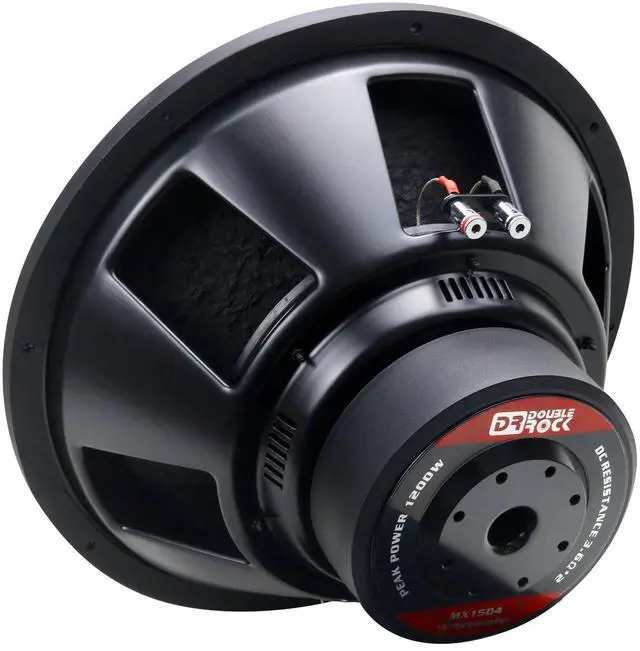 Max power: 1200 Watts MAX and RMS power 600 Watts 15 subwoofer ^^ [Voice Coil] 2.5" 4-Layer High Temperature Copper Voice Coil Black Aluminum ^^ [Cone Material] 15" Competition Grade Pressed Paper Cone ^^ [Specification]