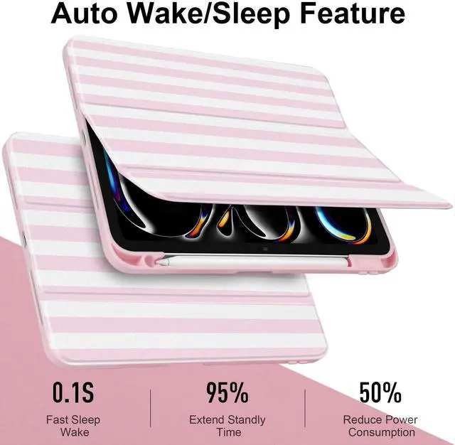 INSTANT RESPONSE & DUAL ANGLES: The magnetic smart cover provides 0.1 s fast response to auto sleep/wake your device, effectively reducing power consumption by 50% and extending standby time. The trifold stand offers two ergonomic modes: a 65 angle for immersive movie viewing and a 30 angle for comfortable typing and working.
