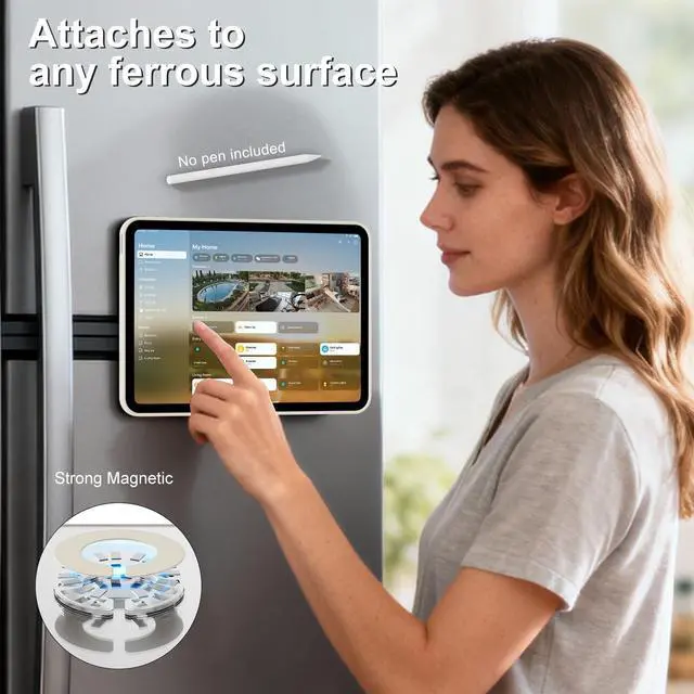 • Multiple Placement Angles: The multi-fold cover with a transparent, detachable magnetic back panel allows for multiple placement options, including 720 rotation and vertical and horizontal placement. The transparent back panel can be detached and attached to the refrigerator